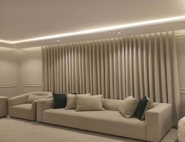 النقطة الثالثة: إخفاء الستارة بالكامل. لو تحب الشكل المودرن، خلي الجبس نازل قدام الشباك شوي، والستارة تكون خلفه. الحركة هذي منتشرة جدًا مع تفصيل ستائر ينبع خصوصًا في المجالس وغرف النوم. وتعطي إحساس إن السقف أعلى والمكان أوسع، خصوصًا لو اخترت ألوان تناسب ديكورك من ستائر ينبع.