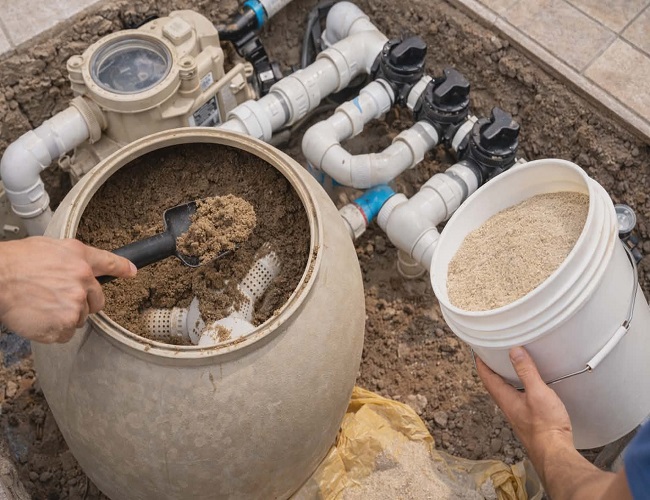 ومن الأمور اللي تنغفل أحيانًا موضوع الفلاتر. مع الوقت، فلتر المسبح يحتاج عناية، وأهمها تغيير رمله للمسابح بالمدينة المنورة. الرمل داخل الفلتر هو اللي ينقي الماء، وإذا صار قديم أو متسخ، مهما نظفت المسبح يبقى الماء عكر. عشان كذا خدمة تغيير رمله فلتر المسبح بالمدينة المنورة تعتبر أساسية ضمن الصيانة الدورية.
